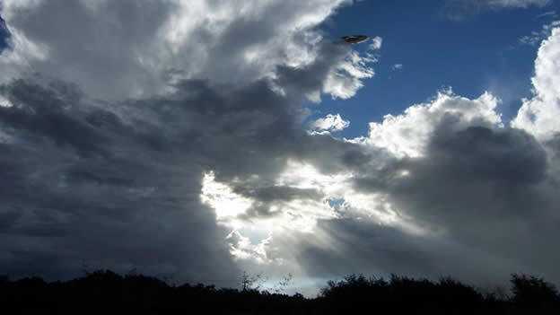 céu, incluindo um que parou a 900 metros de altura e "enviou um feixe de luz